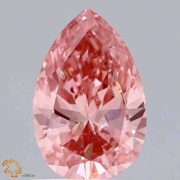This 0.91 Carat Pear Shaped Lab Grown Diamond has Pink Color, VS2 Clarity, Good Cut.